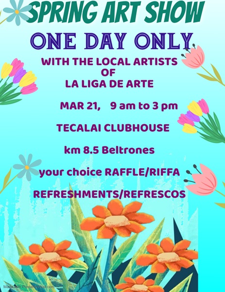 - March 21. Spring Art Show by la Liga de Arte. 9am – 3pn, Tecalai Club House.