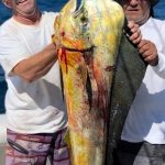 Mid July: 20 – 30 pounds Dorados. 70 pound wahoo. Yellowtail. Big grouper. Occasional Roosterfish. Marlin in close and around the Reef. A few skipjack and Sierra are around. Corvina. Good action beyond the Reef. Water temps to mid 80s.