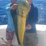Beginning of July: Lots of small dorado within the first mile weighing up to 12 pounds. Starting to see Sailfish scattered in close and around the Reef – a couple caught a mile out. Occasional Wahoo.