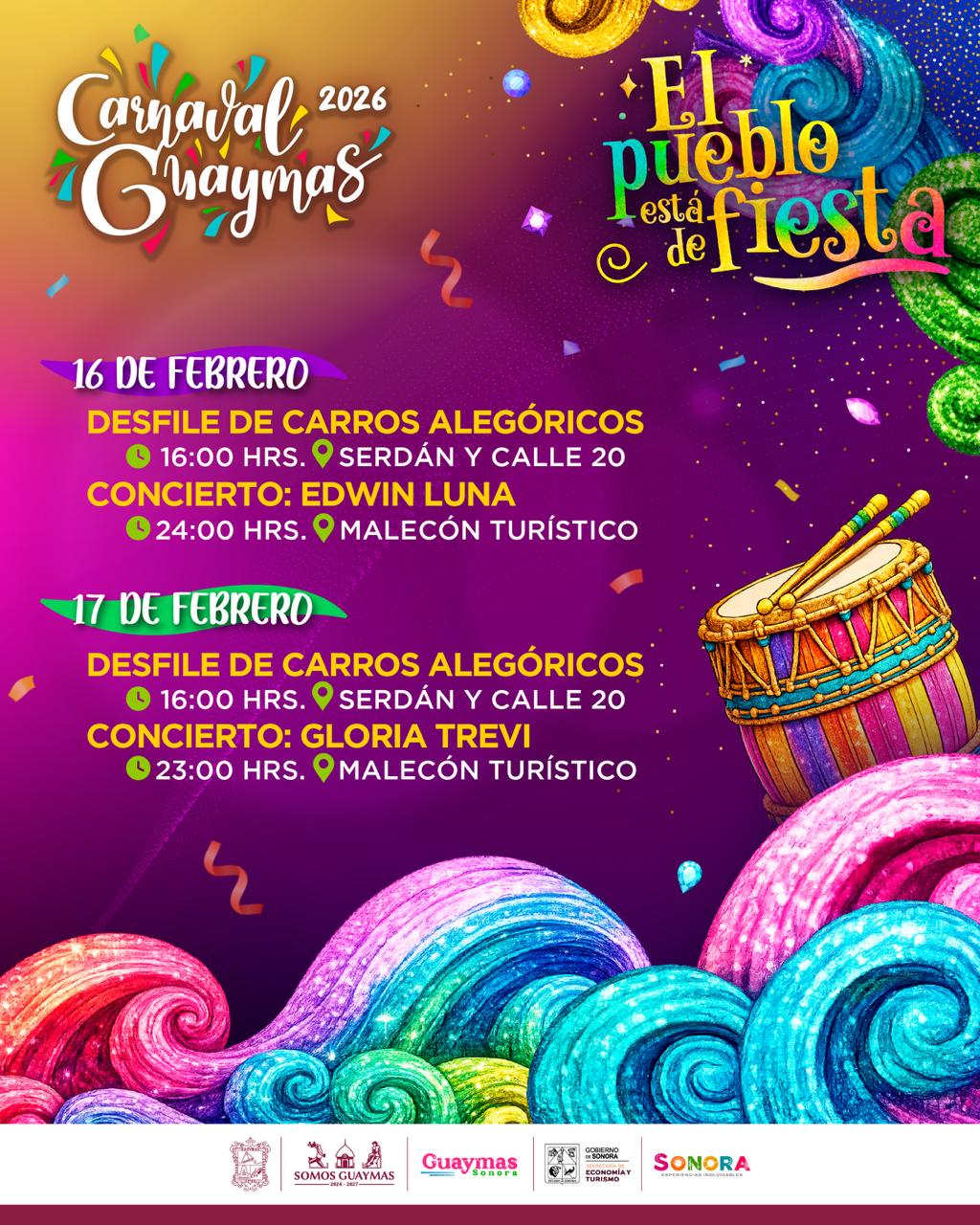 Carnaval Guaymas will take place from February 12 to 17, 2026.