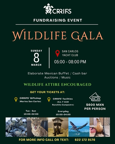 - March 8. CRRIFS Wildlife Gala fundraising event. 5pm, San Carlos Yacht Club.