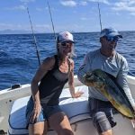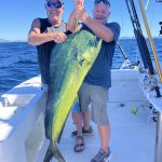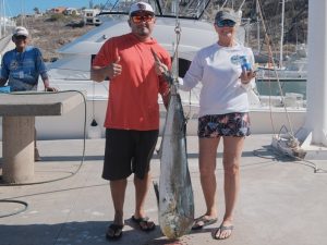 Mid July: 20 – 30 pounds Dorados. 70 pound wahoo. Yellowtail. Big grouper. Occasional Roosterfish. Marlin in close and around the Reef. A few skipjack and Sierra are around. Corvina. Good action beyond the Reef. Water temps to mid 80s.