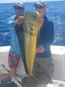 Beginning of July: Lots of small dorado within the first mile weighing up to 12 pounds. Starting to see Sailfish scattered in close and around the Reef – a couple caught a mile out. Occasional Wahoo.