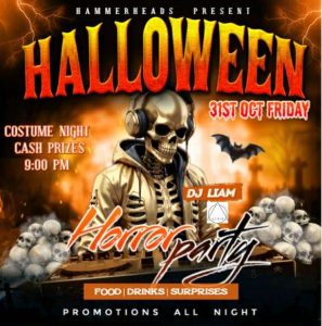 The party starts at 9:00pm. There will be a DJ, drink specials and a costume contest with prizes. So put on your best costume, come on down to HammerHead’s and have some spook-tacular fun! No entrance fee. |