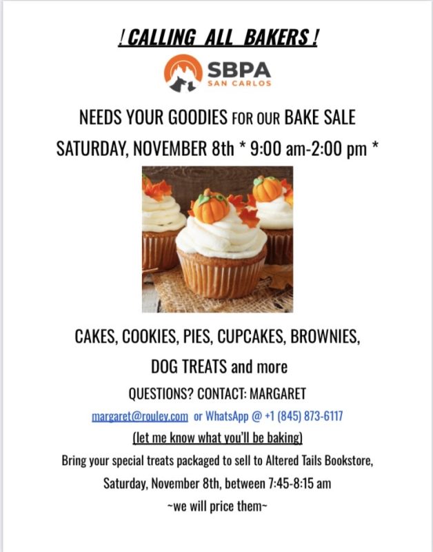 Sample delectable baked goods at the SBPA Book Fair & Bake Sale on Saturday, November 8 from 9:00am to 2:00pm, at the Altered Tails Book Shoppe at Marina San Carlos (between Hammerheads and Barracuda Bob’s).